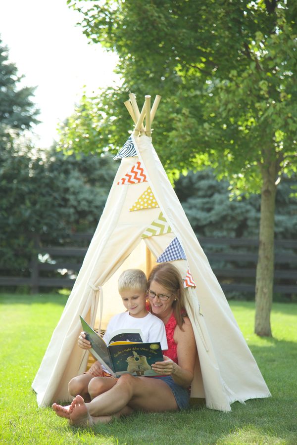 Customize your tepee with a bunting or throw pillows for the perfect cozy spot.